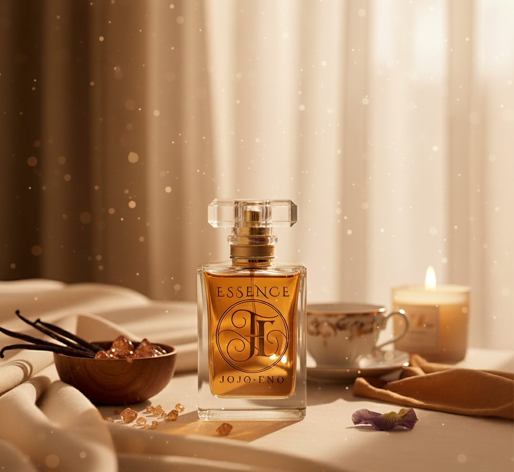 JOJO ENO SIGNATURE. Essence is soft, sweet, and beautifully feminine. It opens with radiant florals, melts into a warm gourmand heart, and settles into a sensual, cozy base that feels comforting yet luxurious.