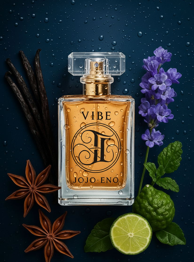 JOJO ENO SIGNATURE. Vibe is a crisp, modern unisex fragrance with a smooth sensual edge. Fresh aromatic notes blend effortlessly with warm, earthy undertones, creating a scent that feels clean, confident, and irresistibly magnetic.